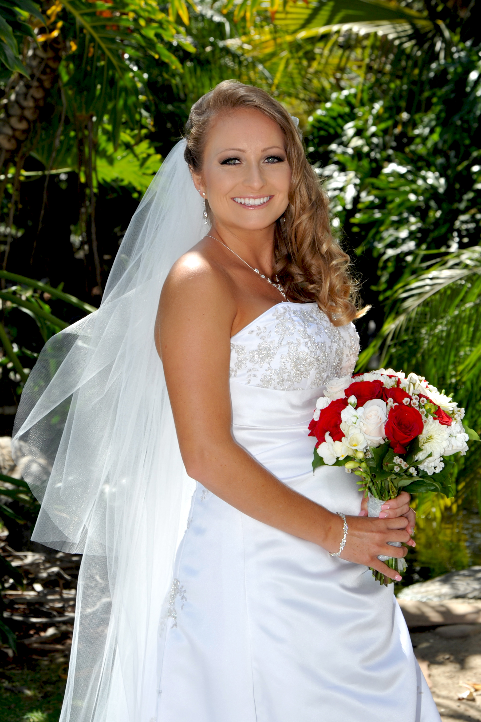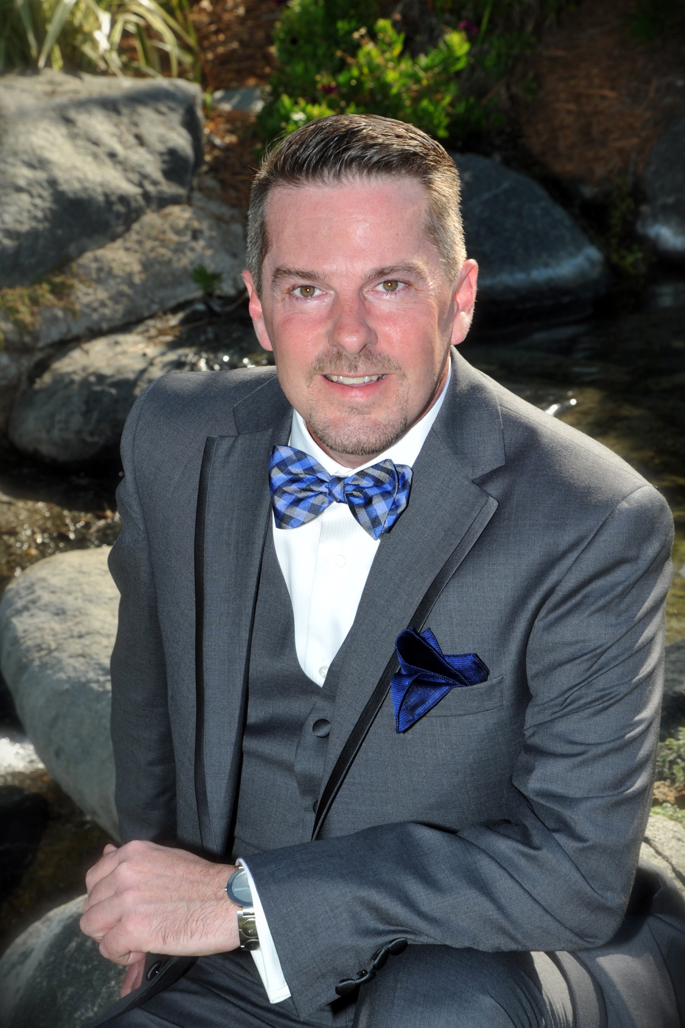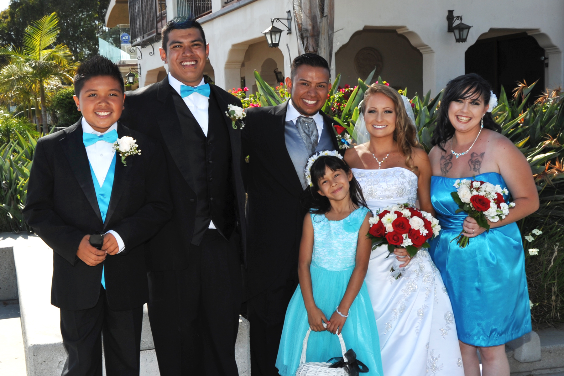 This was a very special day for such a cute couple! Liz and Dan shared their wedding vows at San Vicente Golf Resort in Ramona. The bride and groom have 2 adorable children, so this was an extra sweet wedding with their little ones in the wedding party. All the guests were escorted to the ceremony sight in golf carts, and were seated by the pond with a view of the beautiful waterfall. After the ceremony everyone dined at the resorts fabulous banquet room followed by the toast, cake cutting and lots of dancing! Congratulations to the happy couple.