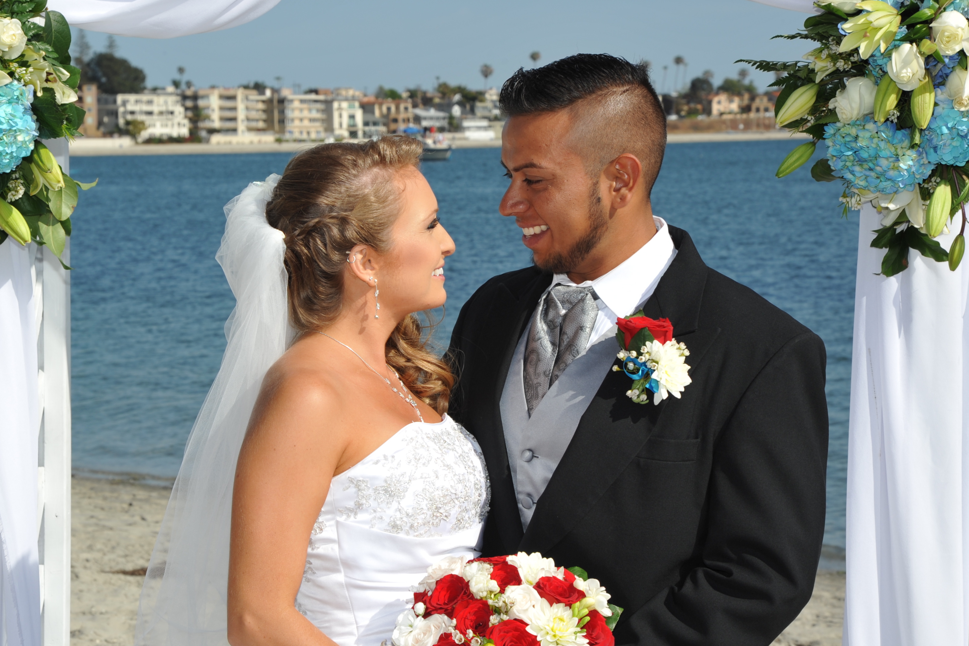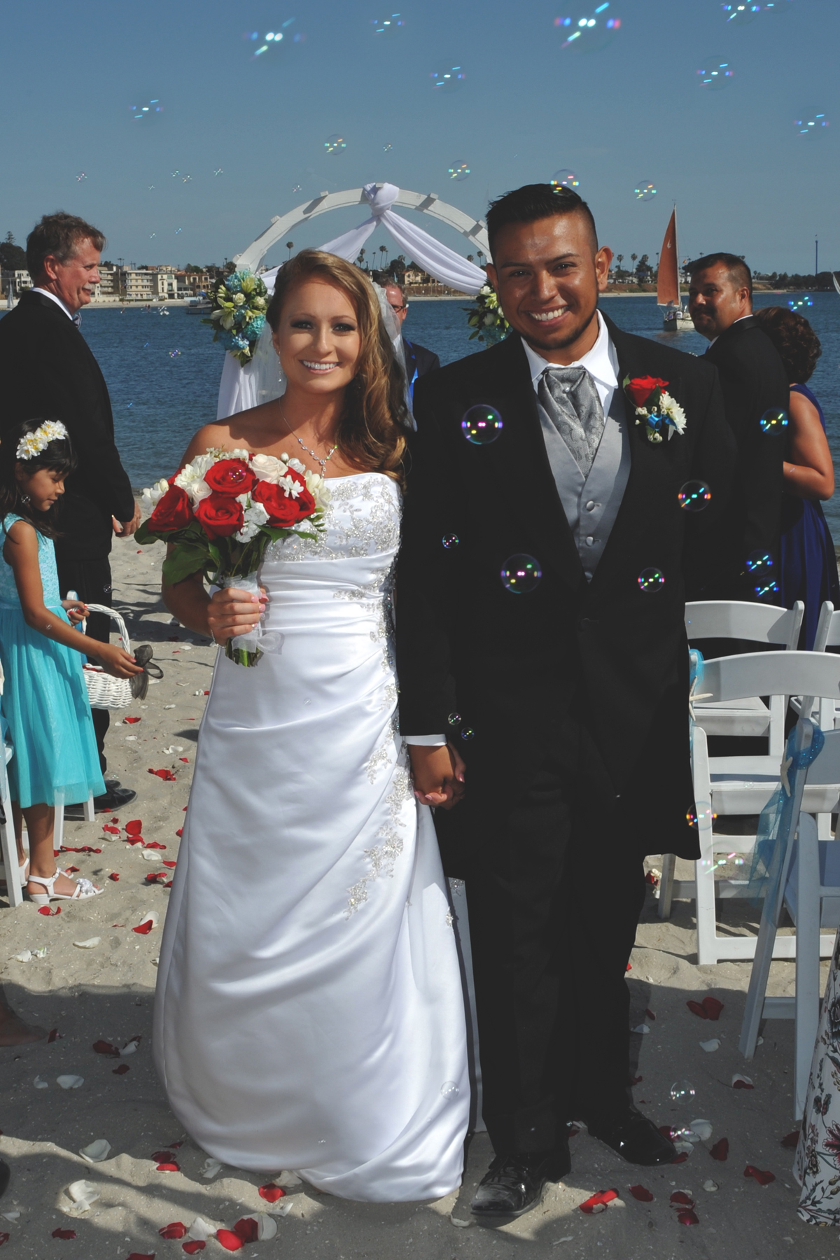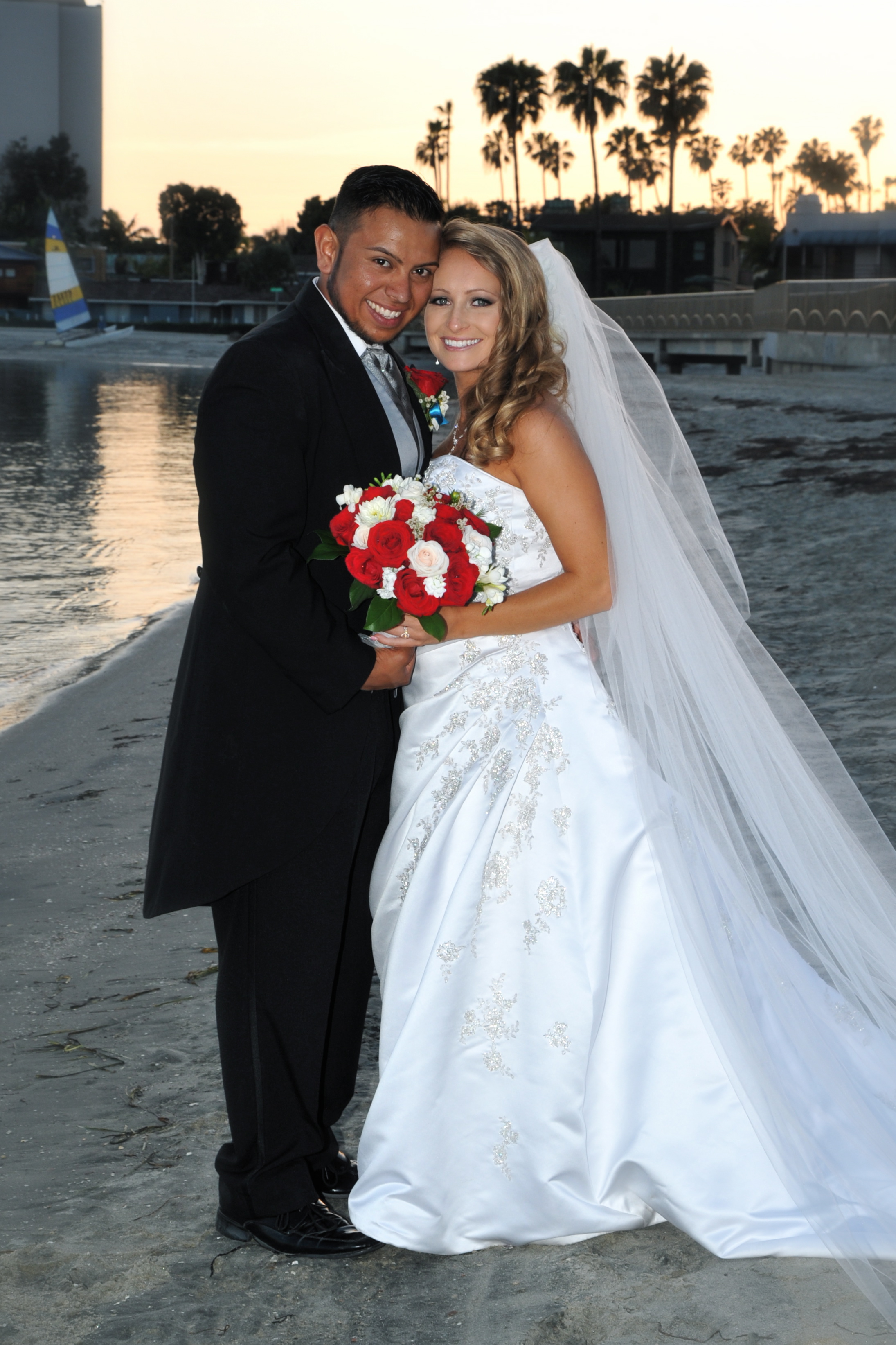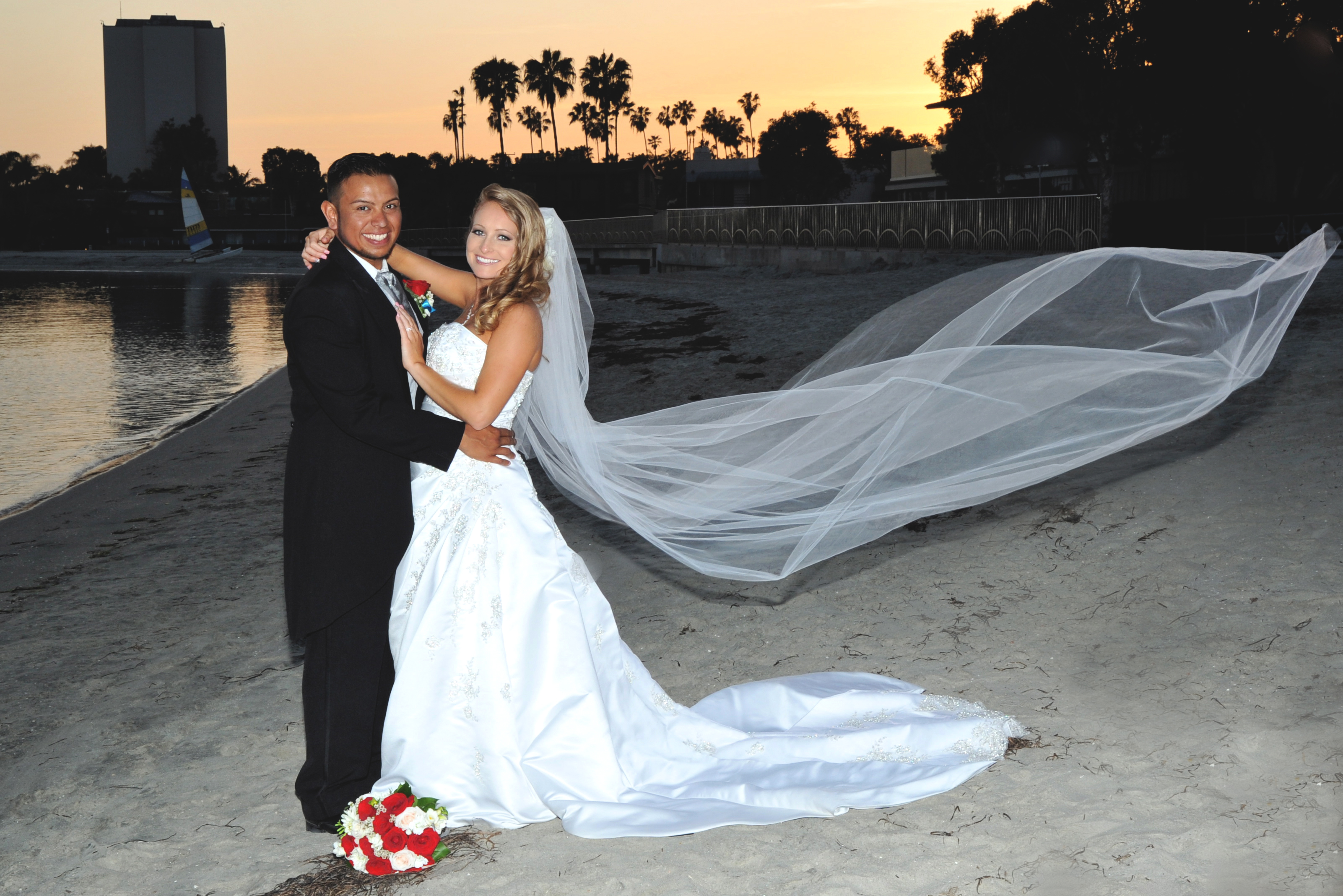 This was the perfect San Diego wedding in Pacific Beach! Oscar and Rebecca’s dreams came true when their wedding day arrived. The weather couldn’t have been any nicer for their bay side ceremony. This gorgeous couple exchanged vows on the beach with a light wind coming in off of the ocean, surrounded by family and friends. The festivities continued with lots of toasts and and a beautiful prayer delivered by the father of the bride. Nothing beats a California sunset, and this day delivered an amazing, golden backdrop for their wedding portraits. Congratulations to the newlyweds!