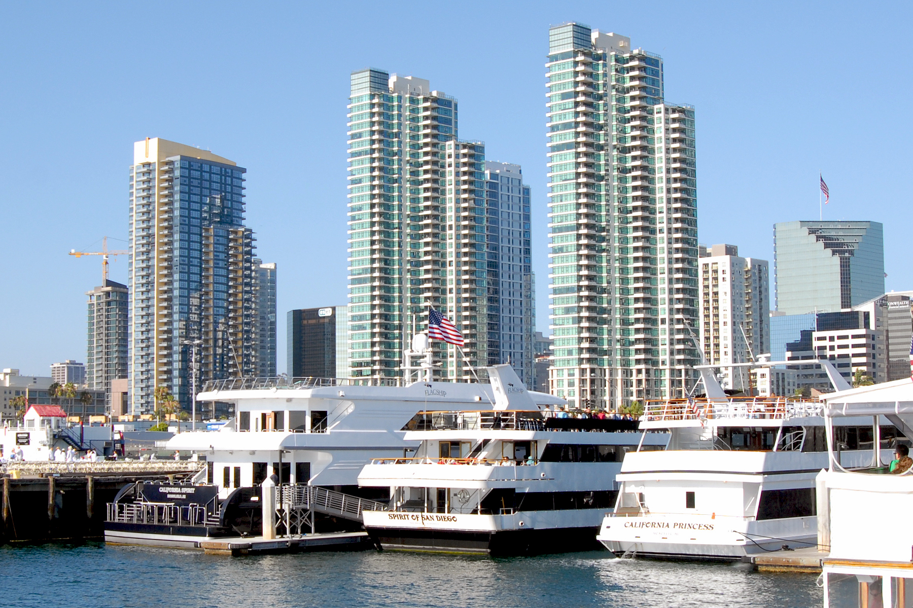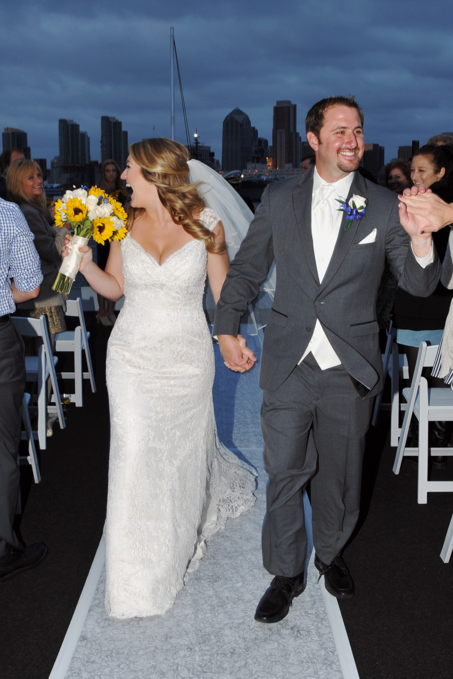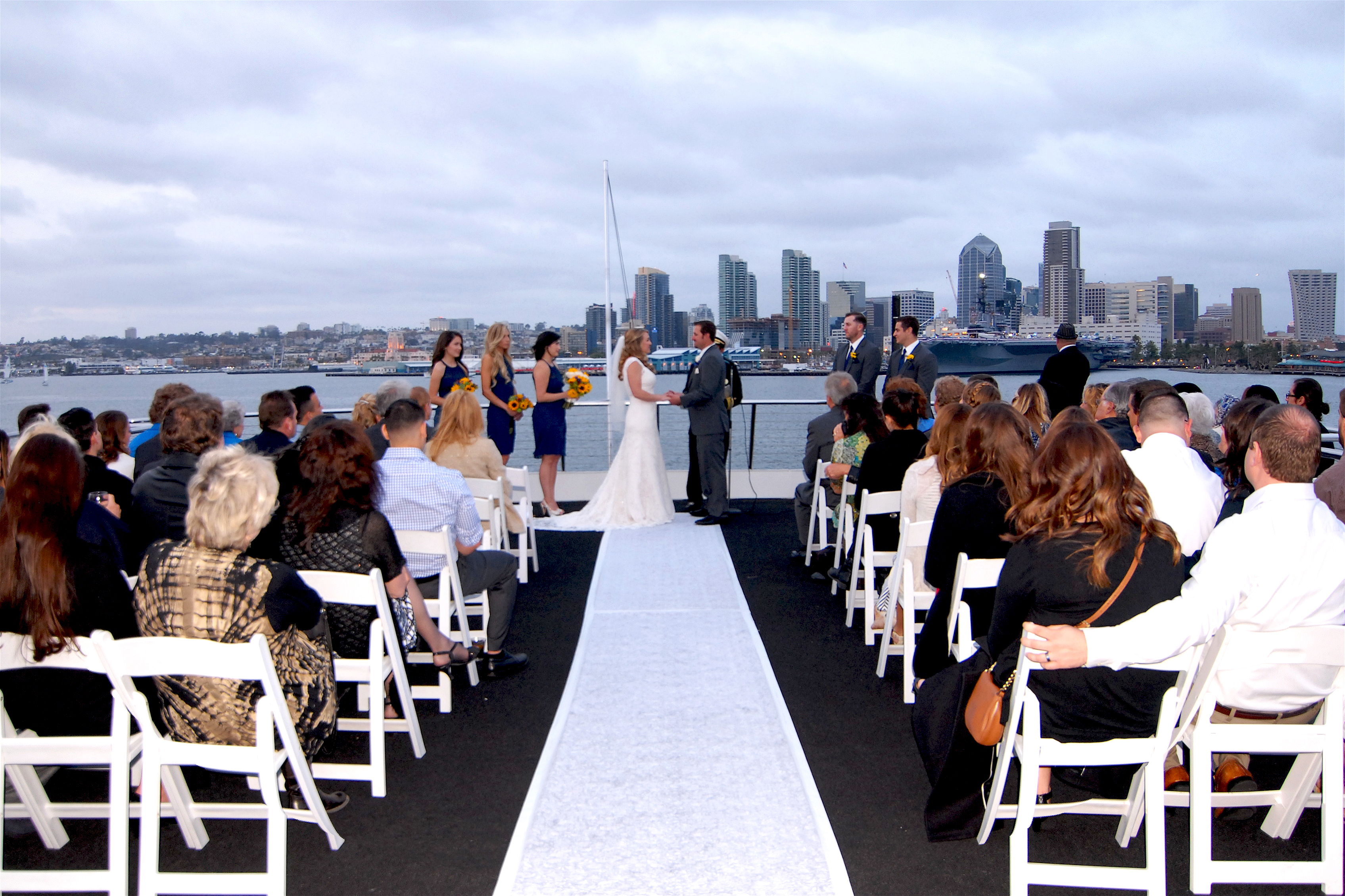 A private yacht wedding on San Diego Bay offers spectacular views, top notch elegance, and a one of a kind southern California experience. Erica and Alex held their special day on Flagship Cruises and Events yacht “California Princess” Their June wedding had perfect weather with all the upgrades, including a fabulous sit down dinner, and champagne for all! Guests enjoyed the sunset, as they dined and then walked out on deck for the breathtaking views of the Coronado Bridge, and the San Diego skyline. The yacht transformed into a disco after dinner, and everyone danced the night away! Congratulations to the happy couple!